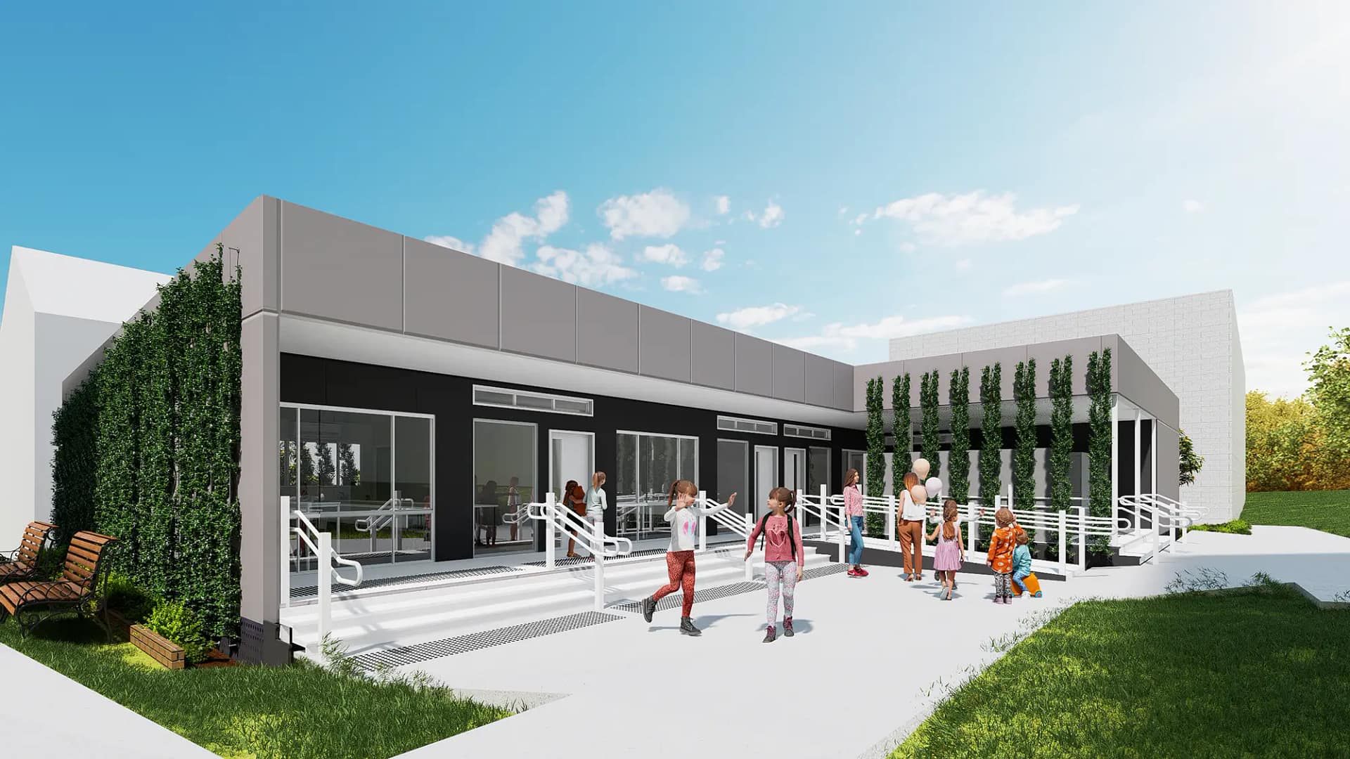 Stage 1: The creation of a single storey modular building to assist with its increase in student capacity and a pergola with slab on ground to shelter new locker areas.